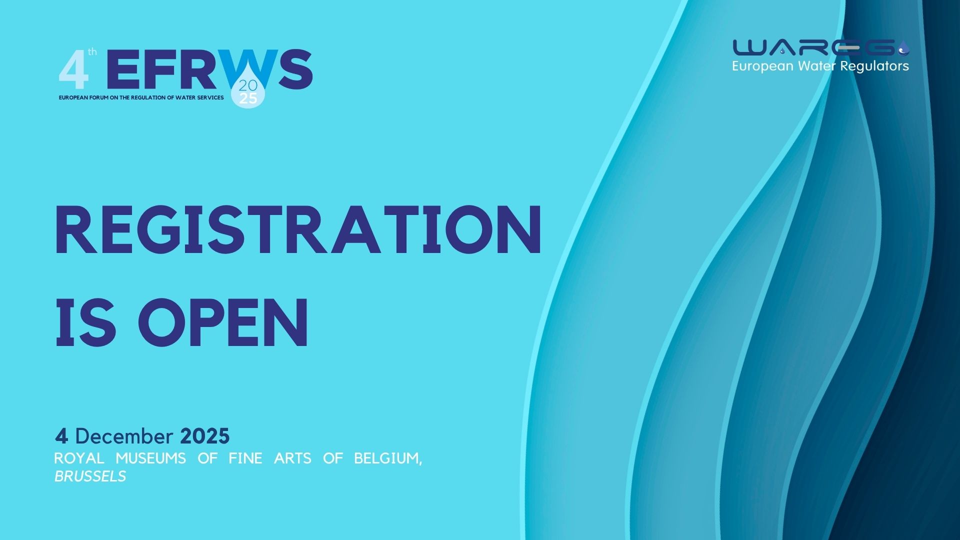 Join Europe’s regulators and policy community at the 4th European Forum on the Regulation of Water Services (EFRWS25). Registration is now open for the Forum taking place on Thursday, 4 December 2025 in Brussels with full online participation.